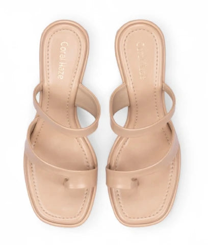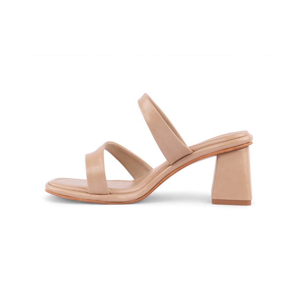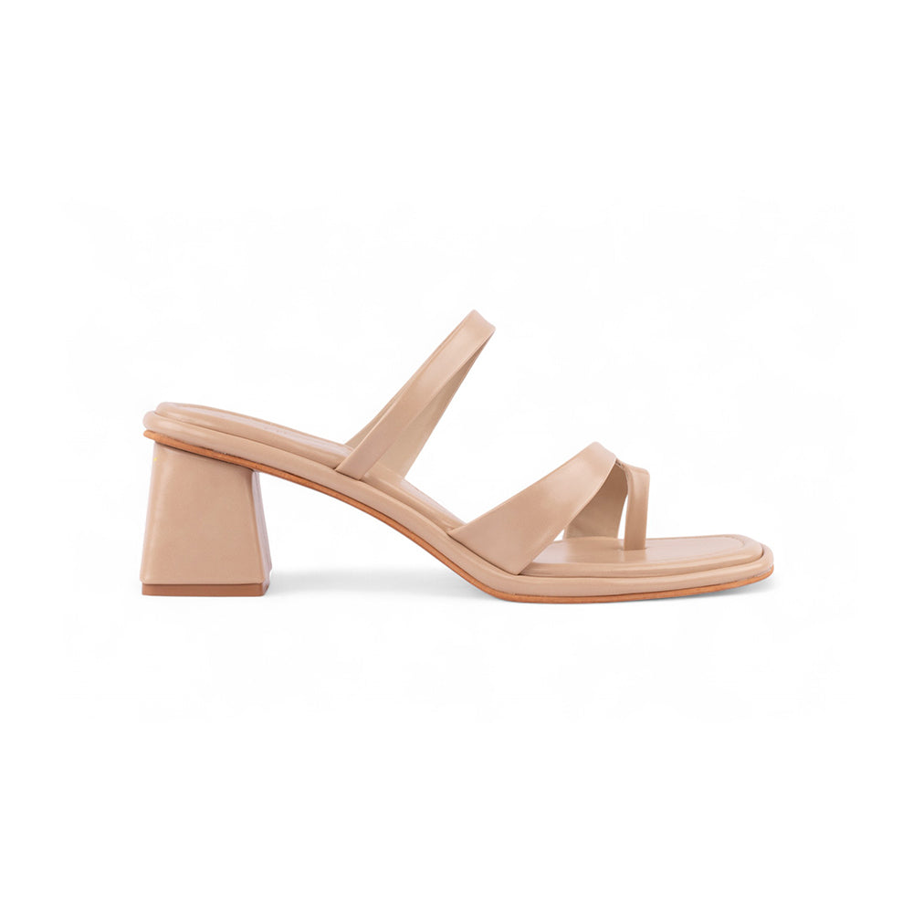 Beige thumb strap design block heels