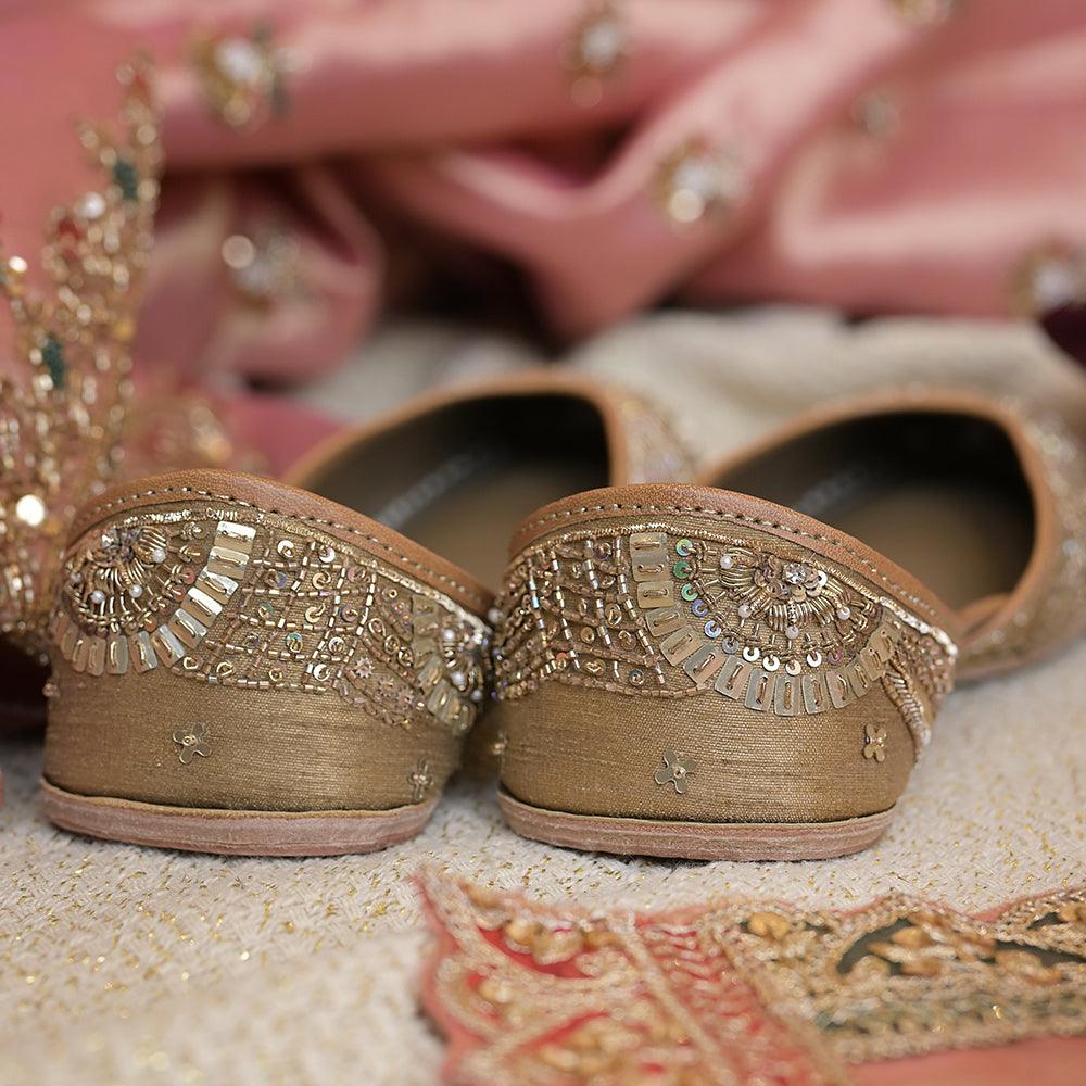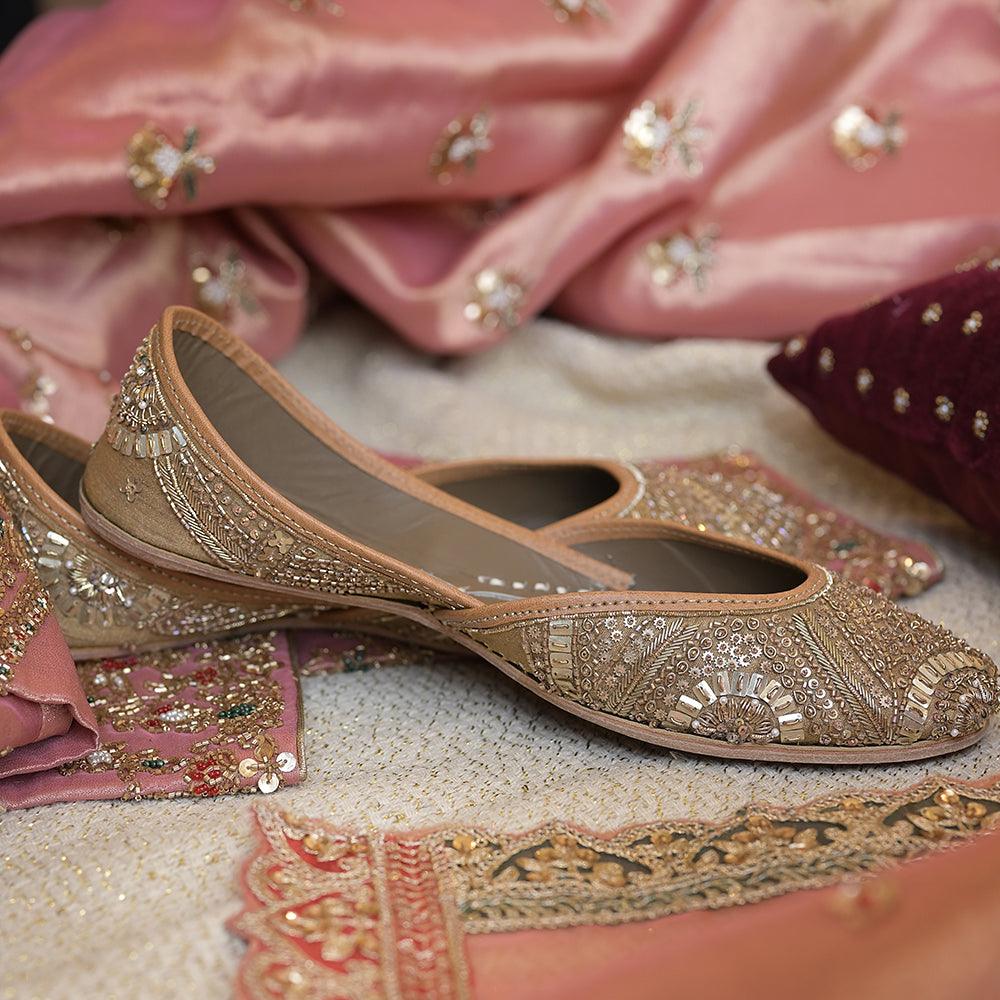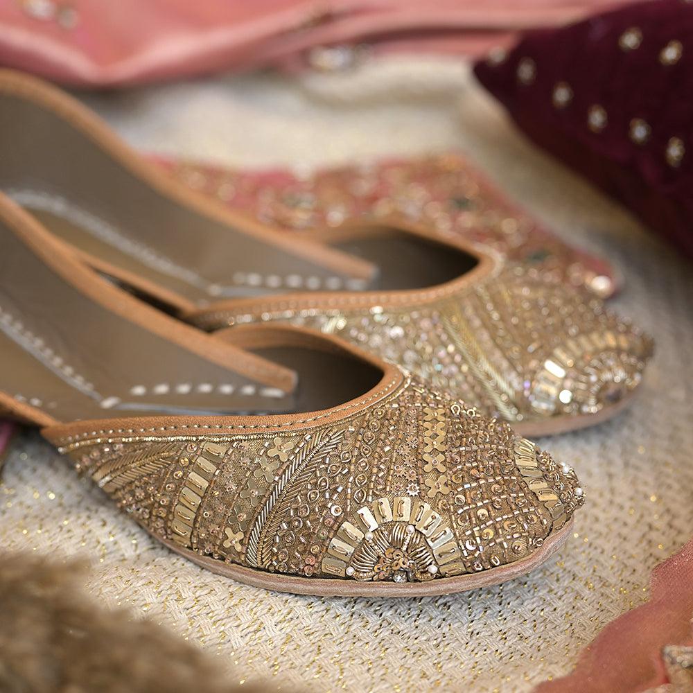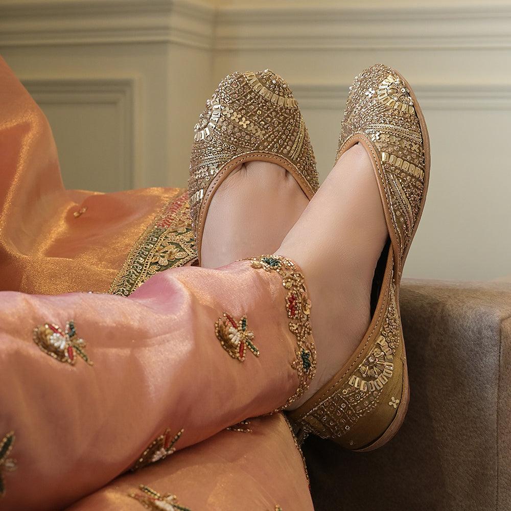Hand embroidered gold zardozi work set on a gold base set in an abstract pattern