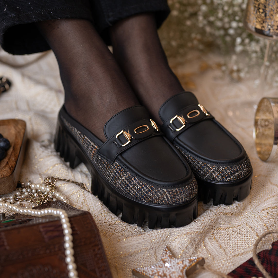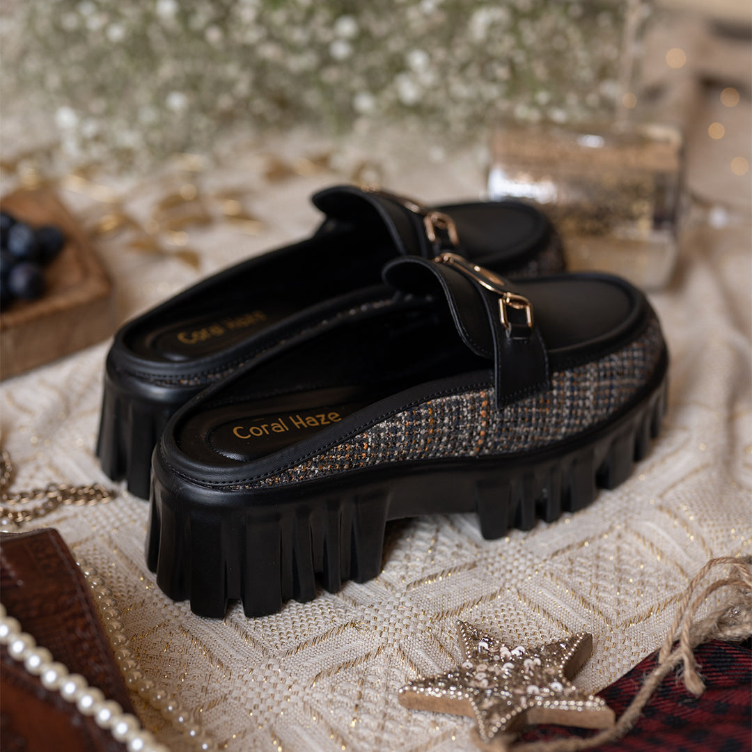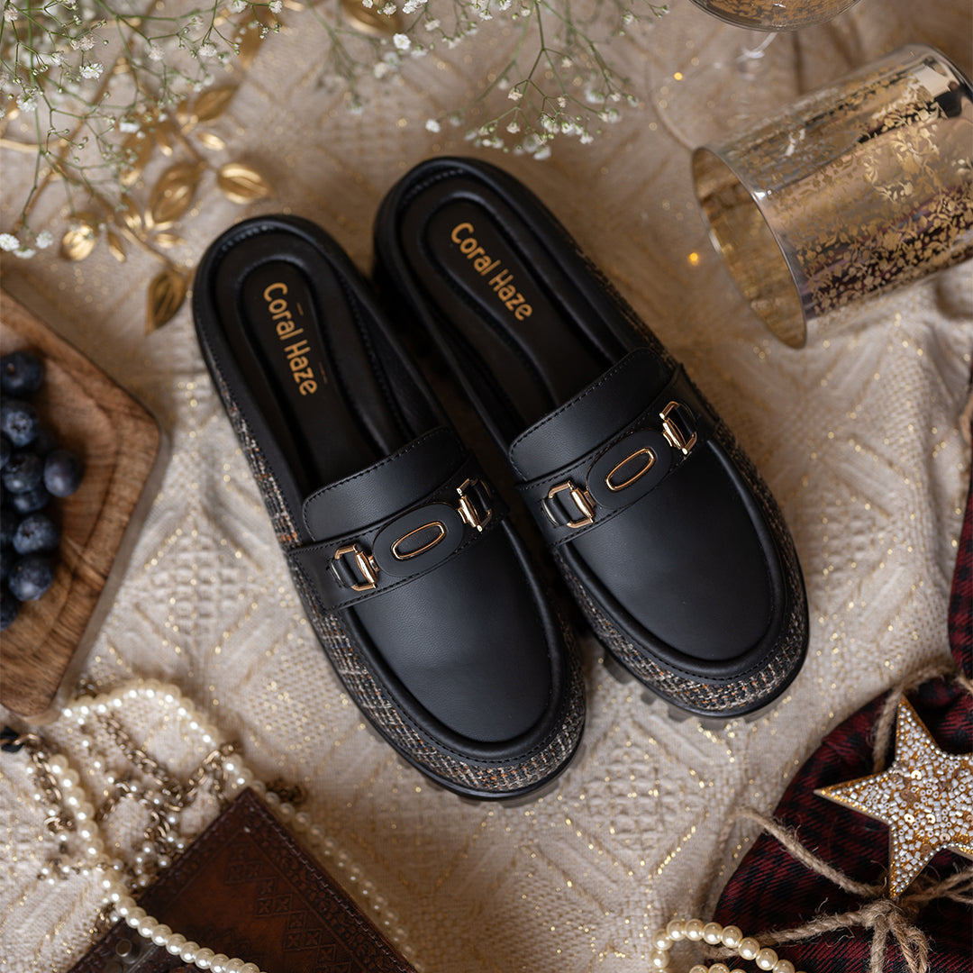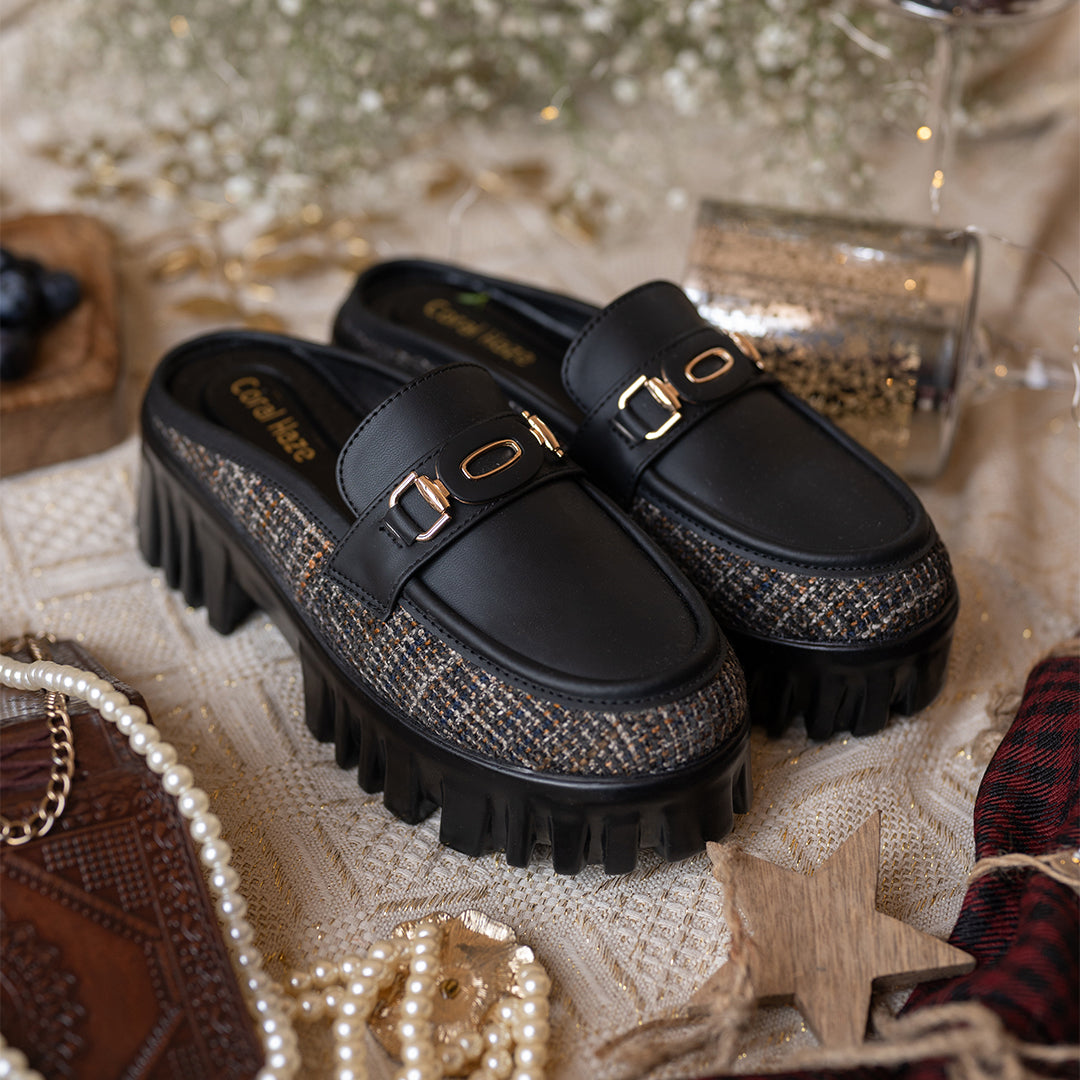 This is the perfect winter companion for those who love a touch of luxury. With its premium leather, vintage jacquard, and golden detailing, this shoe is a standout. The chunky sole and open back keep you cozy while adding regal elegance to every winter ensemble