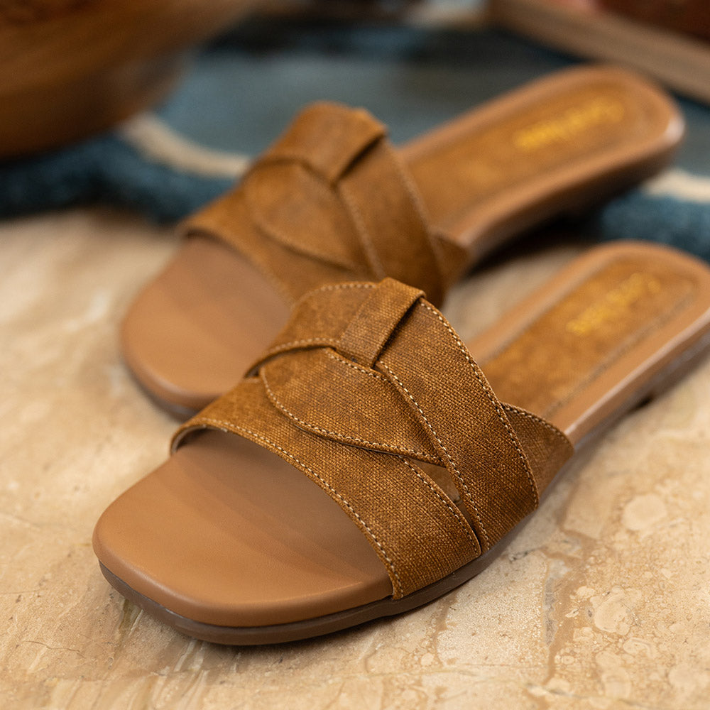 Tan leatherite multiple straps flat sandals with tan insole detailing