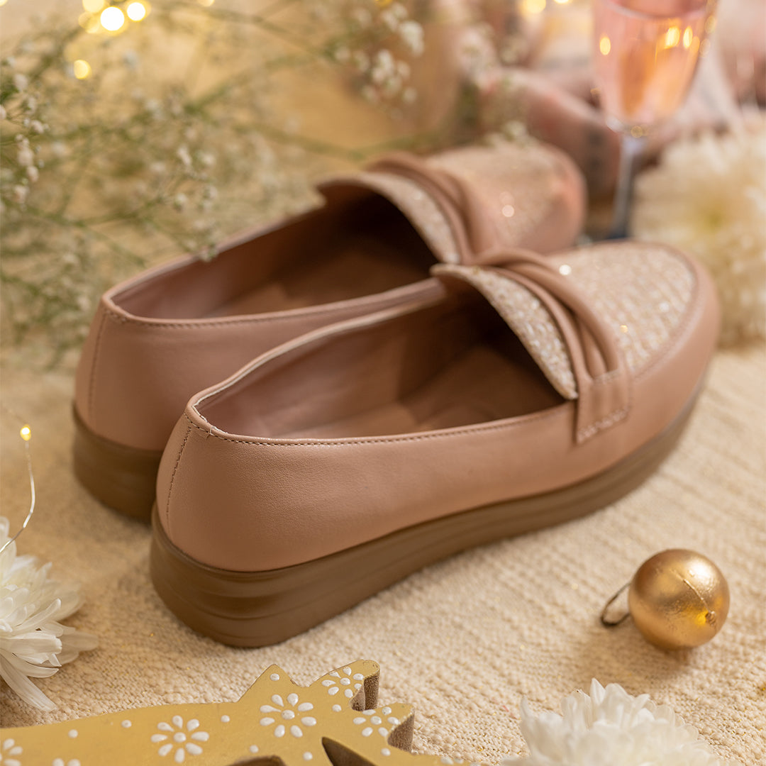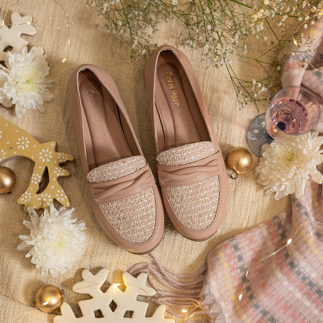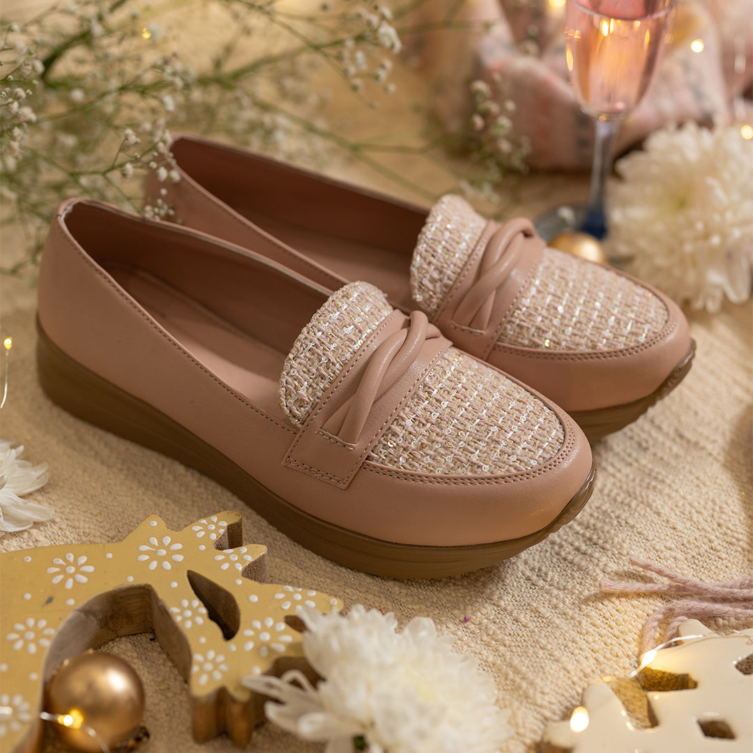 Gracefully designed, this pair combines a soft blush pink base with a stunning jacquard and leather detailing that creates a refined, luxurious look. Perfect for the season, it’???s the shoe that brings comfort and elegance together, making it a must-have in your collection