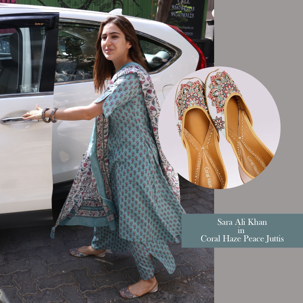 Style Tip: Peace is a versatile pair of juttis, that is, more on the casual-semi formal side of the spectrum. Pair this with a printed salwar kameez and rock that print-on-print trend with ease.