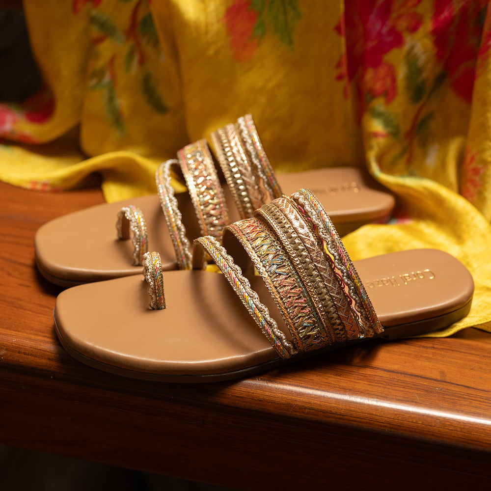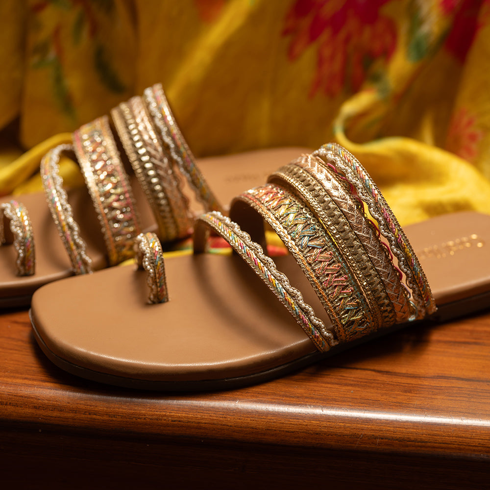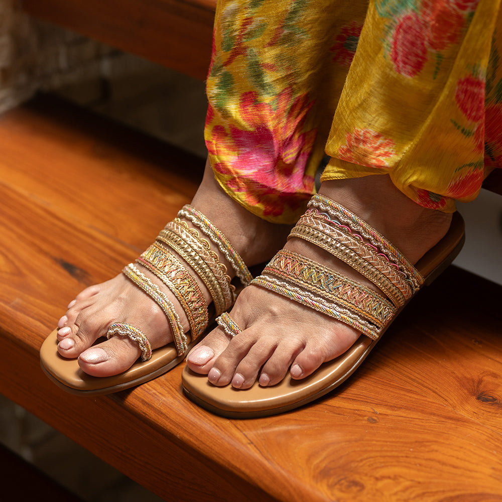 Gold and multi-colored straps kolhapuri sandals
