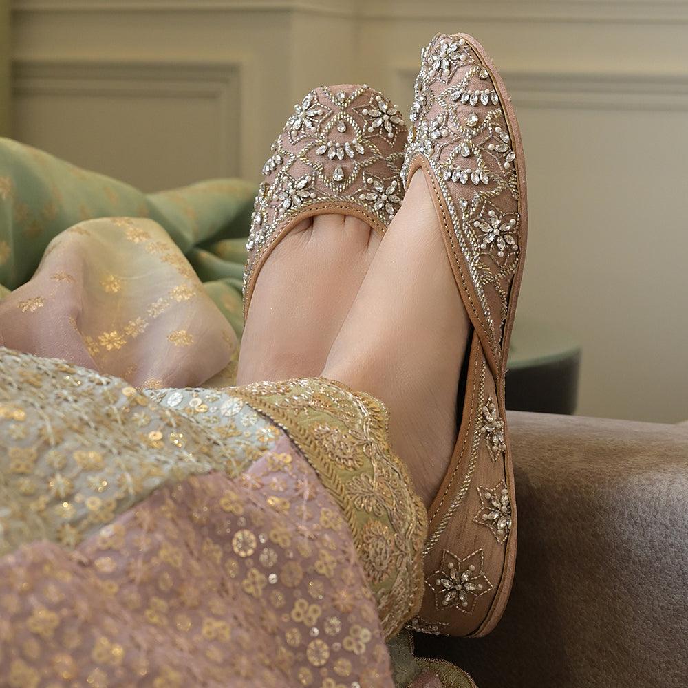 Hand embroidered glass beads jaal with rhinstone flowers in the front and scattered flowers at the back